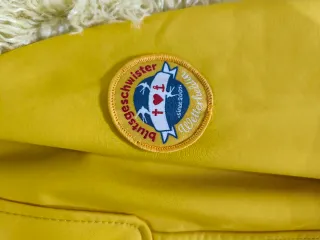 Chubasquero de la marca Schmuddelwedda en color amarillo. - Talla M (38/10). - Capucha. - Cierre de botones. - Bolsillos frontales.