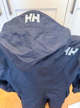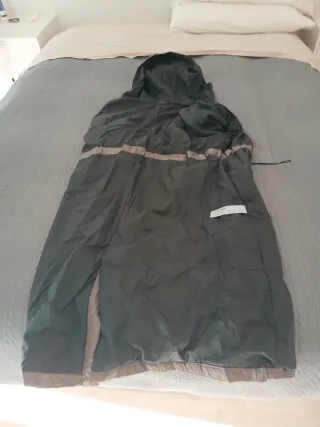 Chubasquero de tres cuartos. - Diseño moderno y funcional. - Cierre de cremallera. - Bolsillos laterales. La goma de la capucha en un lado se ha ido el recubrimiento pero no se ve porque queda el detalle encima, se aprecia en las fotos