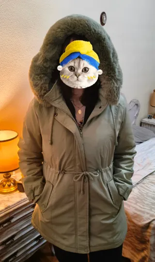 Chubasquero con capucha. - Cierre de cremallera. - Bolsillos laterales. - Borrego en el interior. - Aunque pone L talla pequeño, como una M.
