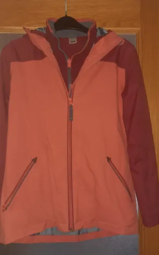 Chubasquero Quechua con forro polar. Se pueden utilizar por separado . Talla 14 años - Diseño bicolor en tonos naranja y burdeos. - Cremallera frontal completa. - Bolsillos laterales con cremallera.