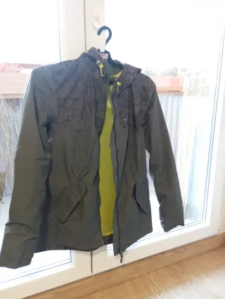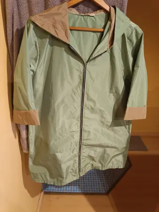 Chubasquero ligero con capucha. Realmente es una talla 13/14 de niña, pero es igual que una talla S de mujer. - Cierre de cremallera. - Dos bolsillos delanteros con botones. - Puños elásticos.