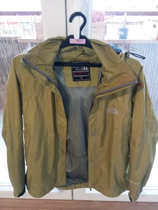 Chubasquero The North Face de color verde oliva. Talla M. Tiene uso pero aún se conserva bastante bien.