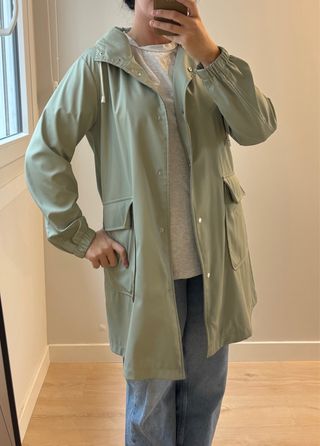 Chaqueta impermeable de Zara en color verde. - Diseño con capucha. - Cierre de botones. - Bolsillos frontales.