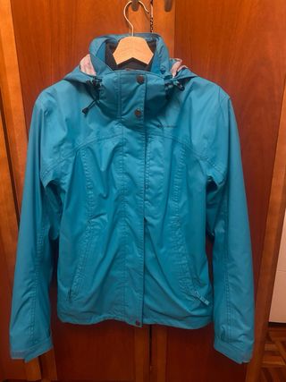 Abrigo Columbia con poco uso. Se pueden separar las dos capas (el chubasquero del forro) mediante una cremallera, como se ve en la última foto. No se vende con la capucha ya que no la tengo.