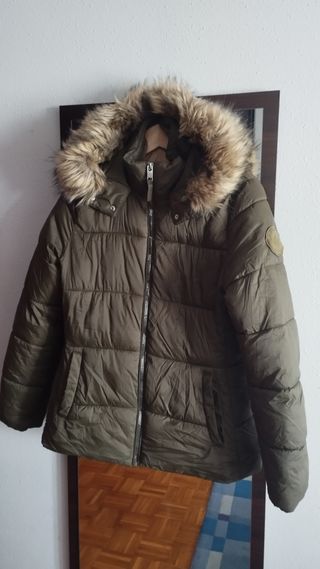Chubasquero verde oliva en talla XS con borreguito por dentro y capucha. Buen estado en general . Marca easywear