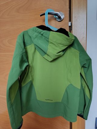 Chaqueta Ternua de color verde, ideal para actividades al aire libre. - Capucha ajustable. - Cremallera frontal completa. - Bolsillos laterales con cremallera. - Puños ajustables.