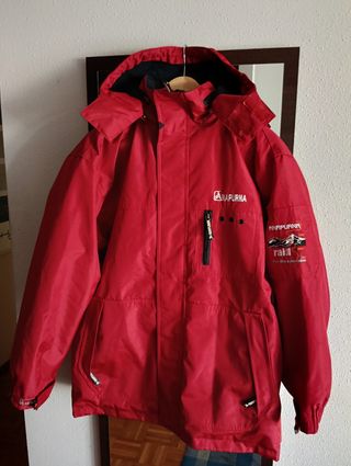 Chaqueta de nieve de la marca Annapurna en color rojo. Diseñada para actividades al aire libre. La usó una chica pero es unisex. - Cierre frontal con cremallera. - Bolsillos laterales. - Capucha ajustable. - Logo de la marca en el pecho y manga.