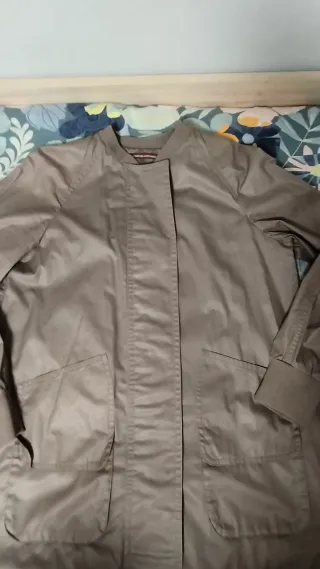 Chubasquero de Zara en color verde oliva.Talla L, unos 56 cm de sisa. Entrega Bilbao o hago envíos. Esta cómo nueva. - Cierre de cremallera y botones. - Bolsillos frontales con solapa. - Cintura ajustable con cordón. - Cuello alto.