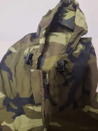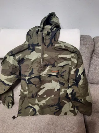 Chubasquero Carhartt con estampado de camuflaje. Talla S mujer. - Diseño con capucha. - Bolsillo frontal y dos laterales - Cordones ajustables en el bajo y en el cuello.