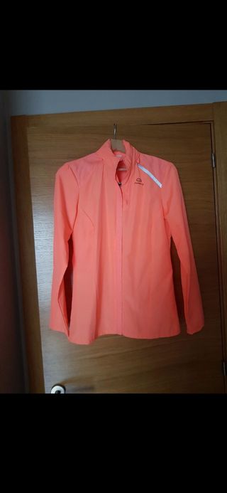 Chaqueta cortavientos liviana, con capucha (ver todas sus medidas en fotos), al cual se le retiró la etiqueta (creo que era Pull & Bear). Color amarillo anaranjado/dorado. En muy buen estado, cremalleras muy bien, 2 bolsillos con cremalleras también. Corta vientos Mujer M