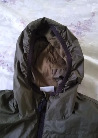 cazadora chubasquero corto con capucha y bolsillos talla S