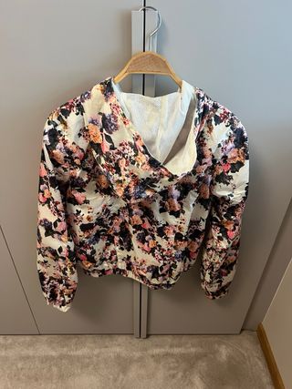 Chubasquero con un estampado floral vibrante y llamativo. - Diseño con capucha. - Cierre de cremallera frontal. - Puños y bajo elásticos. -medidas largo 57 cm sisa 52 cm