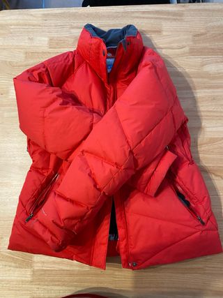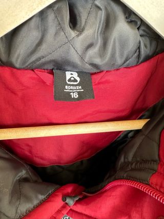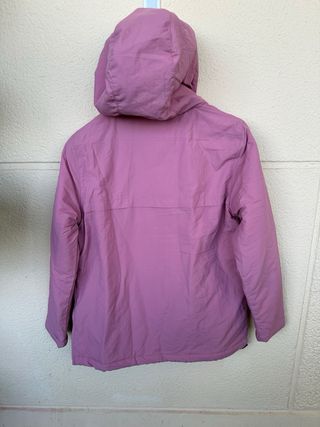 Chaqueta de montaña con un diseño acolchado y capucha. Prácticamente nueva. Usada en dos ocasiones. - Color rosa vibrante con detalles en negro. - Cremallera frontal completa. - Bolsillos laterales con cremallera. - Bolsillo en manga izquierda y en interior. - Espalda reforzada con tejido algodón, para mayor confort. - Capucha extraíble. Para 16 años. Medidas: Largo desde hombro 60 cms. Largo de manga 64 cms. Contorno pecho 98 cms.