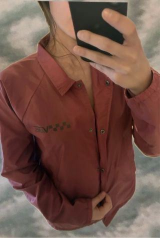 Cortavientos de la marca Vans en color rosa. Presenta un diseño clásico con cuello y cierre de botones. - Logo de Vans en el pecho. - Diseño a cuadros en el logo.