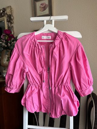 Chaqueta chubasquero cortavientos de Zara talla M, la capulla se puede doblar y guardar en el cuello