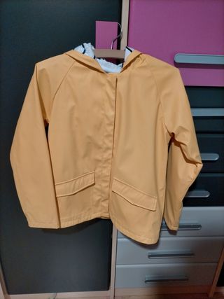 Cortavientos de chica con capucha y cremallera en los bolsillos. Talla 2 equivalente a una XS.