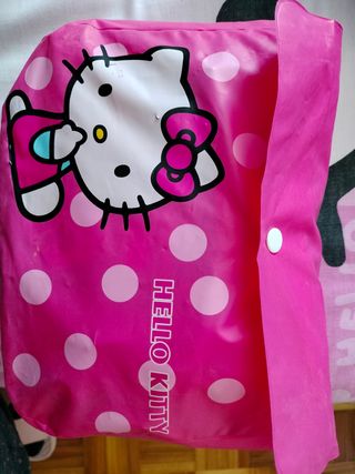 Chubasquero con el icónico diseño de Hello Kitty y lunares blancos. Talla 120cm - Cierre con botón. - Diseño divertido y colorido.