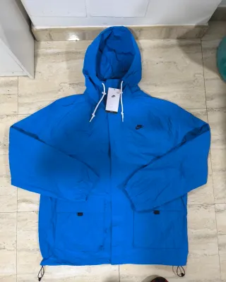 Chubasquero con capucha marca Nike. - Cierre cremallera metalica - Bolsillos frontales con solapa y velcro - Cordones ajustables en la capucha -Cordon elastico en bajo para mejor ajuste Nuevo a estrenar, con etiquetas. Original , comprado en la tienda Nike Store