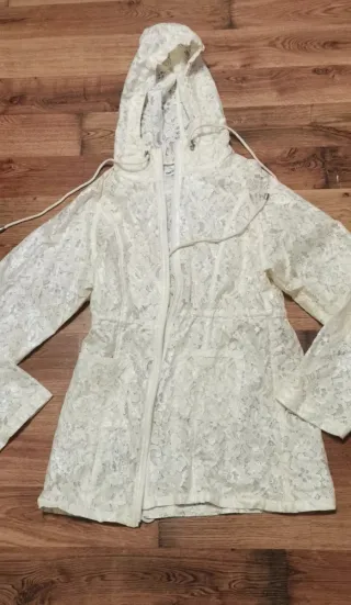 Chubasquero ligero con un delicado diseño de encaje floral y capucha. - Cierre de cremallera frontal. - Cordón ajustable en la cintura. - Bolsillos laterales.