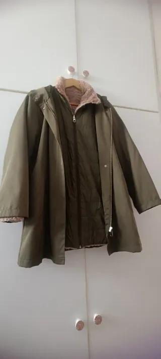 Chaqueta de color verde con forro interior desmontable y convertible en chubasquero. - Diseño moderno y versátil. - Cierre de cremallera. - Cuello con pelo sintético.