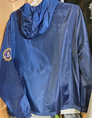 Cortavientos con el logo del FBI. - Diseño con cremallera frontal. - Incluye capucha. - Parche del FBI en la manga. Ancho entre axilas: 58 cm Largo desde hombro: 70 cm