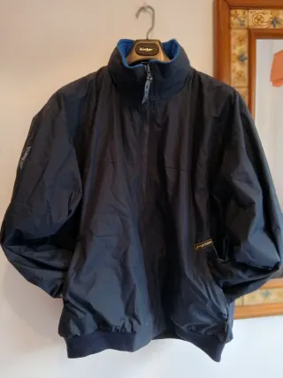Chaqueta náutica de color azul, ideal para actividades al aire libre. - Talla XXL. - Marca Meteo. - Impermeable. - Cuello alto con forro interior polar azul. - Con capucha impermeable que se guarda en el cuello. - Cierre de cremallera frontal. - Puños y cintura elásticos. - Bolsillos laterales. - Muy calentita. - Medidas: Largo 76 cm x 72 sisa