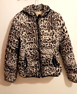 Anorak con estampado de leopardo, perfecto para un look atrevido. - Diseño acolchado. - Capucha integrada. - Cierre de cremallera frontal. - Bolsillos laterales.