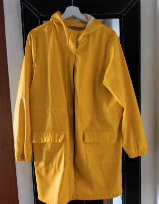 Chubasquero largo con capucha, ideal para protegerse de la lluvia. - Cierre frontal. - Mangas largas. - Diseño holgado.