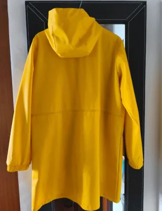 Chubasquero de color amarillo con capucha. - Dos bolsillos frontales. - Puños elásticos.