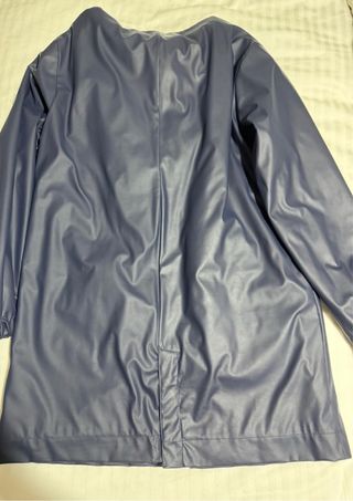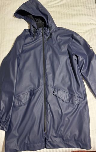 Chubasquero impermeable azul marino con capucha. Largo tres cuartos. Como nuevo.