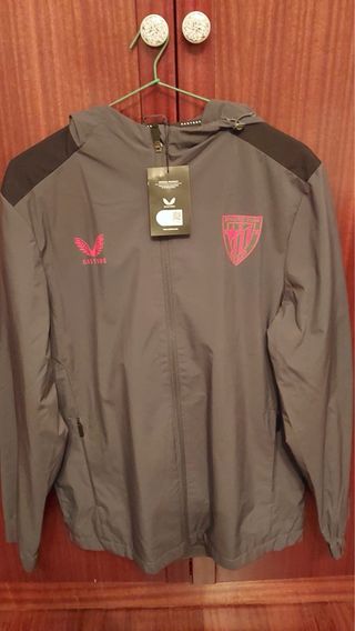 Chubasquero del Athletic Club de la marca Castore en color gris. Ideal para protegerse del viento. - Diseño con capucha. - Cierre de cremallera frontal. - Bolsillo lateral con cremallera.