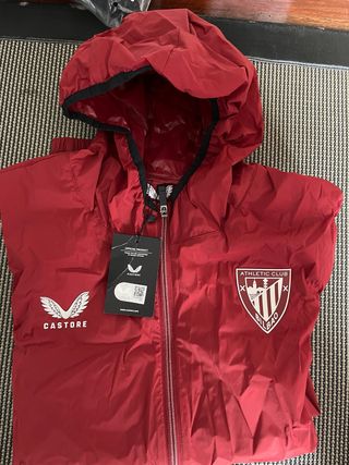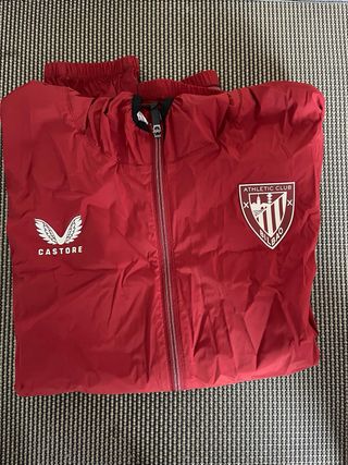Cortavientos oficial del Athletic Club Bilbao. Se guarda el chubasquero en el bolsillo cremallera y no ocupa nada. - Diseño ligero y funcional. - Escudo del club en el pecho. - Cierre de cremallera frontal.