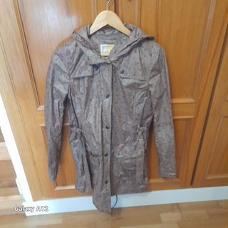 Cazadora impermeable con un diseño de cuadros clásico. - Capucha con forro interior. - Bolsillos frontales con botón. - Cierre de cremallera. Pequeño desgaste en la zona interior que no se ve, la vendo es por que me queda pequeña.
