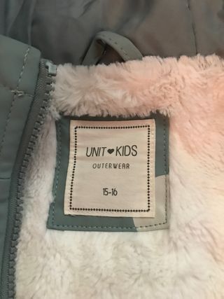 Plumífero chaqueta plateada - Cierre de cremallera frontal. - Bolsillos con cremallera. - Cuello alto. - Es de plumas, abriga mucho y es realmente bonito. Muy poco uso - Yo uso talla XS y me queda bien, pone 16