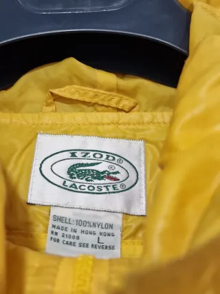 IZOD Lacoste Cortavientos 80s 90s capucha vintage talla L. Incluye fotos con medidas: - axila a axila: 63,5 centímetros. - largo: 68 centímetros. Hecho en Hong Kong. 100% nylon. En excelentes condiciones. Utilizado muy pocas veces. Procedente de armario de coleccionista. Cortavientos de la marca Lacoste con capucha. Un clásico de los años 80 y 90. - Diseño tipo anorak. - Bolsillo frontal con botones a presión. - Cordones ajustables en la capucha y el bajo.