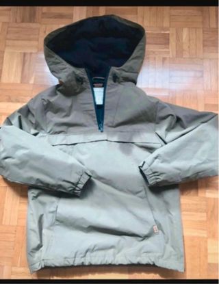 Cortavientos con diseño moderno y práctico. - Mangas de color negro. - Cuerpo principal en tono beige. - Capucha integrada. - Cierre de cremallera frontal. - Bolsillos laterales con cremallera. - talla 10 años