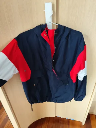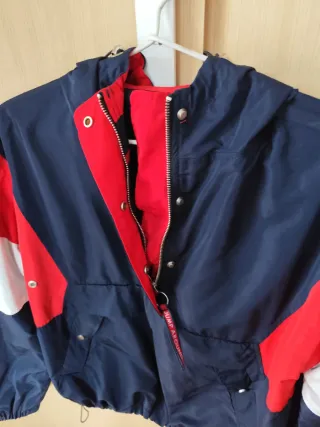 Chubasquero con diseño bicolor en rojo y azul. Perfecto estado. - Capucha ajustable. - Cremallera frontal. - Bolsillos laterales con cremallera. - Detalle de logo en manga.