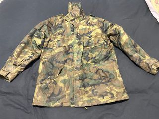 Traje de intemperie con estampado boscoso, modelo antiguo. Para hacer cualquier actividad al aire libre como pesca,airsoft etc.. - Diseño de camuflaje. - Incluye chaqueta,pantalón y forro polar, NEGOCIABLE NUNCA USADO