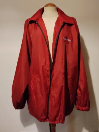 Chaqueta cortavientos de color rojo con detalles blancos. - Cierre de cremallera. - Bolsillos laterales con cremallera. - Cuello alto.