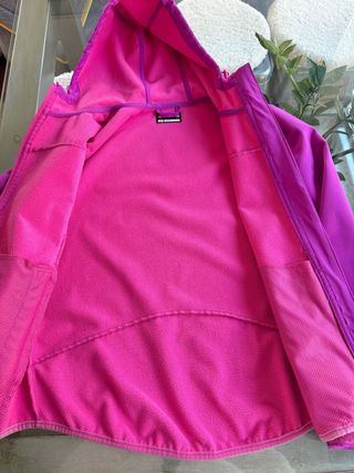 Chaqueta impermeable de la marca Mountain Pro en color rosa. Ideal para actividades al aire libre. - Cierre de cremallera frontal. - Capucha ajustable. - Puños con velcro.