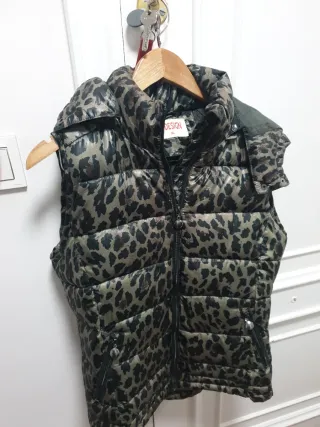 Chaleco acolchado con un llamativo estampado de leopardo. Es una prenda muy actual y versátil. - Diseño moderno. - Cierre de cremallera frontal. - Bolsillos laterales con cremallera.