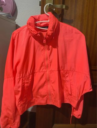Chaqueta con un diseño moderno y llamativo. - Combinación de colores rojo y negro. - Cierre frontal. - Cuello alto. Cuando lo compre me costó más de 300 Estoy vendiendo por motivos de viaje no porque quiera salir de la prenda