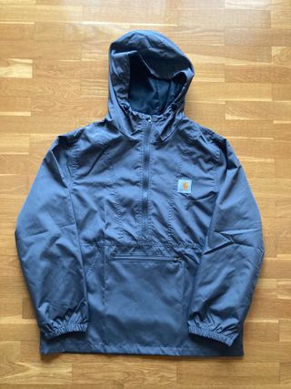 Chubasquero Carhartt de color gris, sin NADA de USO. Tiene capucha y bolsillo frontal. Es una talla M, para consultar medidas no dudes en hablarme.