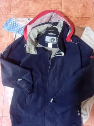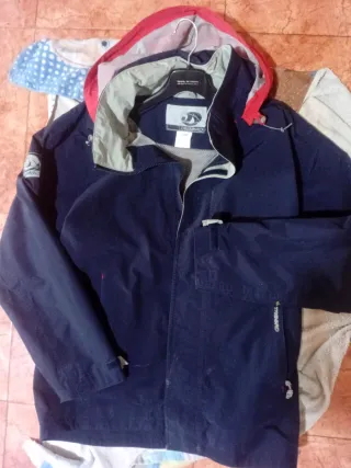 Chaqueta deportiva/ de la marca Tribord de 👦 chico en talla S. Presenta un diseño moderno con detalles en rojo y un cuello alto. -lleva capucha para proteger frío y lluvia - Cierre de cremallera frontal y velcros para cerrar comodamente. - Logo de la marca en la manga izquierda y derecha. -- forro interior tipo Red color gris -Bolsillos con cremallera. -tela lavable tipo chubasquero -optomas condiciones