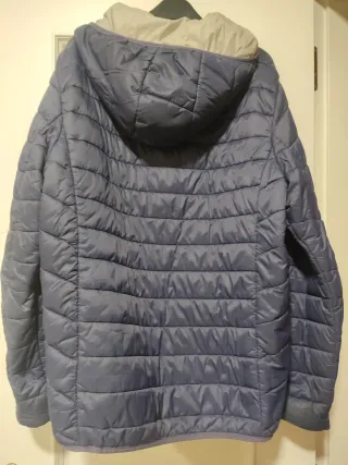 Chaqueta acolchada Active Touch con capucha. Talla L. Color azul marino, interior acolchado también color gris. Medidas hombro 45, axila 54, largo 68. - Cierre de cremallera. - Bolsillos laterales. - Capucha integrada. #chaquetahombre #chaquetamujer #chaquetafemme #chaquetadonna #chaquetaactive #chaquetaactivetouch #chaquetaactivegrisazul #chaquetaacolchada #chaquetaanorak #chaquetaacolchadahombre #chaquetaacolchadamujer