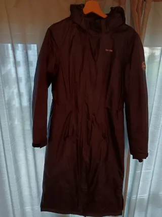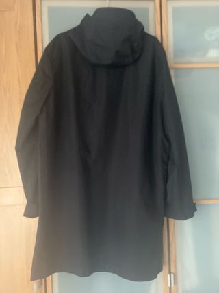 Abrigo impermeable de la marca BPC en color negro. Cuenta con una capucha con pelo sintético. El pelo y el gorro se pueden quitar. Sólo se ha usado 5 veces. - Cierre de cremallera. - Puños ajustables con velcro. - Cordón ajustable en la cintura. - Bolsillos laterales.