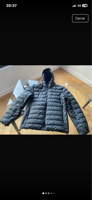 Chubasquero con capucha y cremallera frontal. - Capucha ajustable con cordones. - Bolsillos laterales con cremallera. - Puños elásticos. - Detalle de logo en el pecho. - Muy buenos materiales. - En perfectas condiciones ya que nunca se ha usado. Medidas en las fotografías: - Hombros: 56 CMS - De axila a axila: 60 CMS - Ancho abajo: 62 CMS - Largo: 66 CMS - Largo manga: 73 CMS
