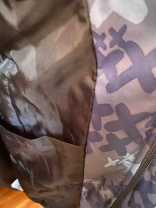 Es amplio, con varias cremalleras en los diferentes bolsillos. Forro interior de color azul. Una vez puesto queda como una talla M.