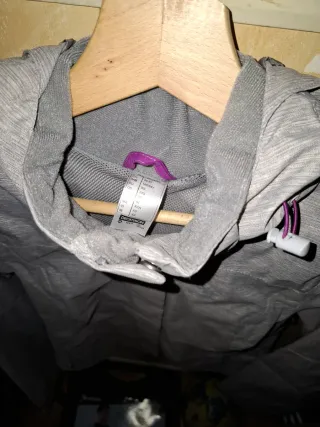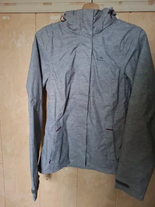 Chubasquero Decathlon gris y morado talla XS mujer