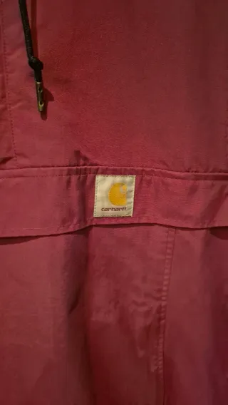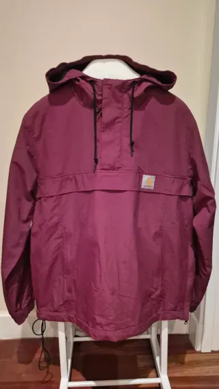 Chubasquero tipo anorak de la marca Carhartt en color rojo. Es una prenda ligera y con capucha. - Capucha ajustable con cordones. - Bolsillo canguro en la parte delantera. - Puños elásticos. - Cordón ajustable en el bajo.